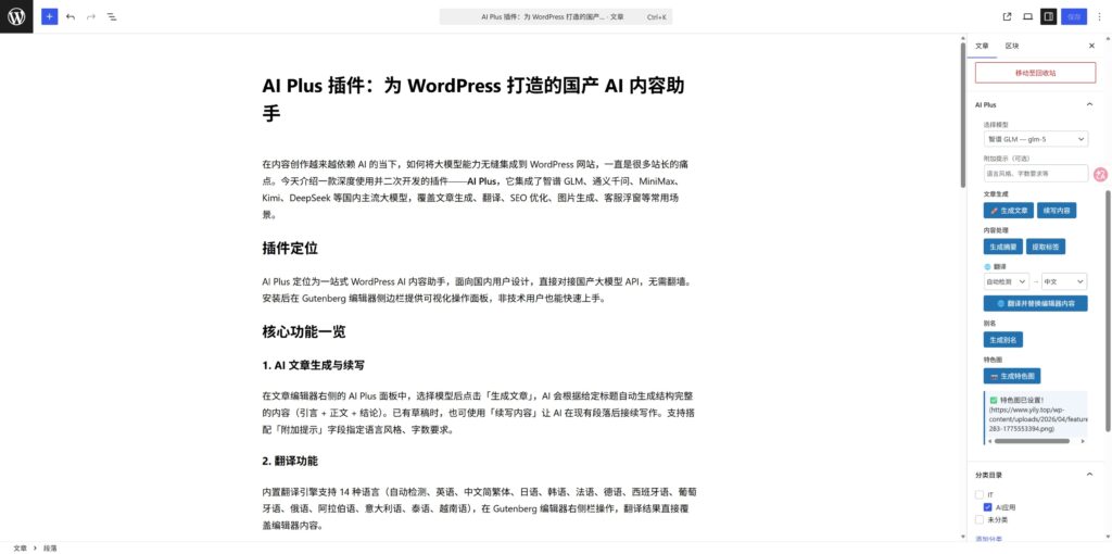 WordPress AI Plus插件深度评测:国产AI内容助手完整解析